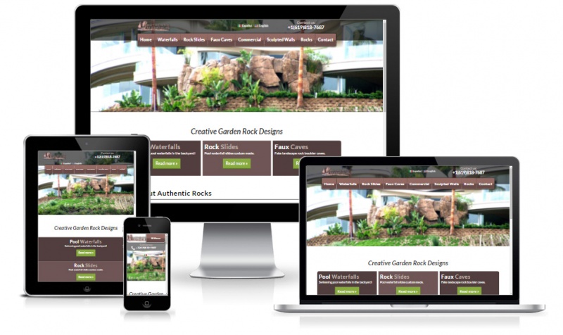 Mobile responsive website for Authentic Rocks, a landscape and high quality custom rockscape design creators with waterfalls, slides and other features for residential and commercial use in San Diego, CA.