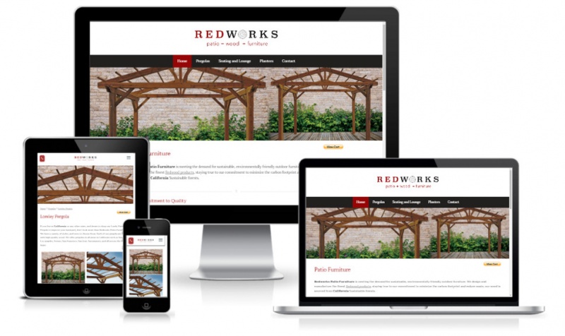 E-Commerce mobile responsive website design for payments with credit cards thru smartphones. High quality custom patio furniture in California serving all USA.